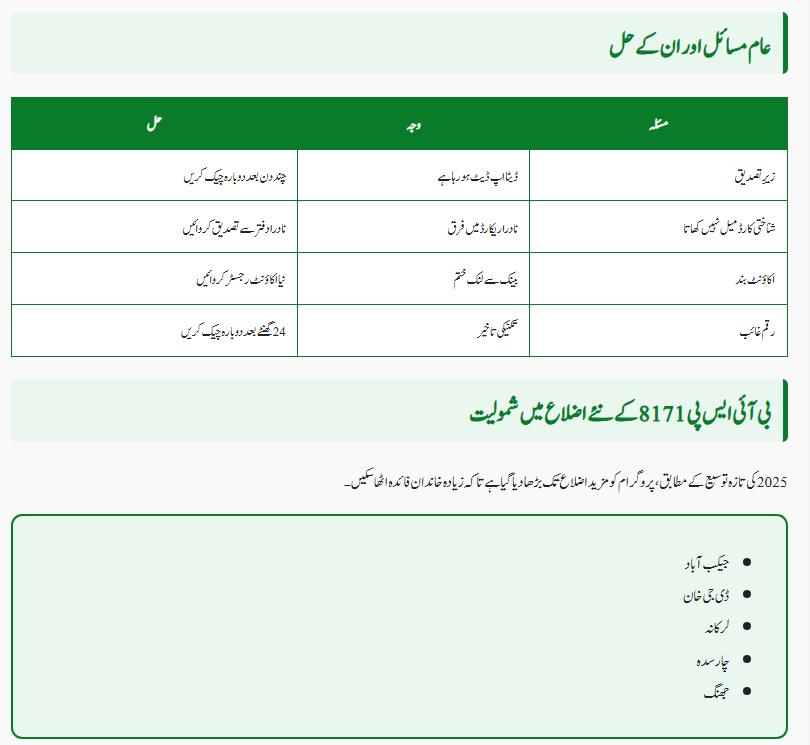 If your CNIC or address is outdated, your payment may be delayed or blocked, so it’s important to update your record through NADRA or your nearest BISP office.
