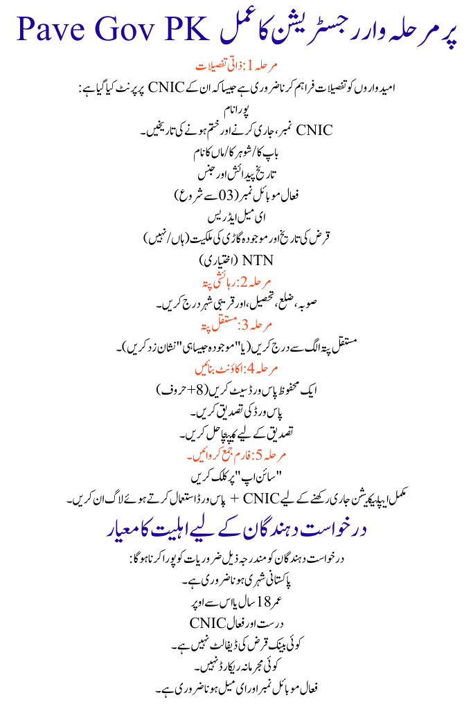 Eligibility Criteria for Pave Gov PK Registration Process